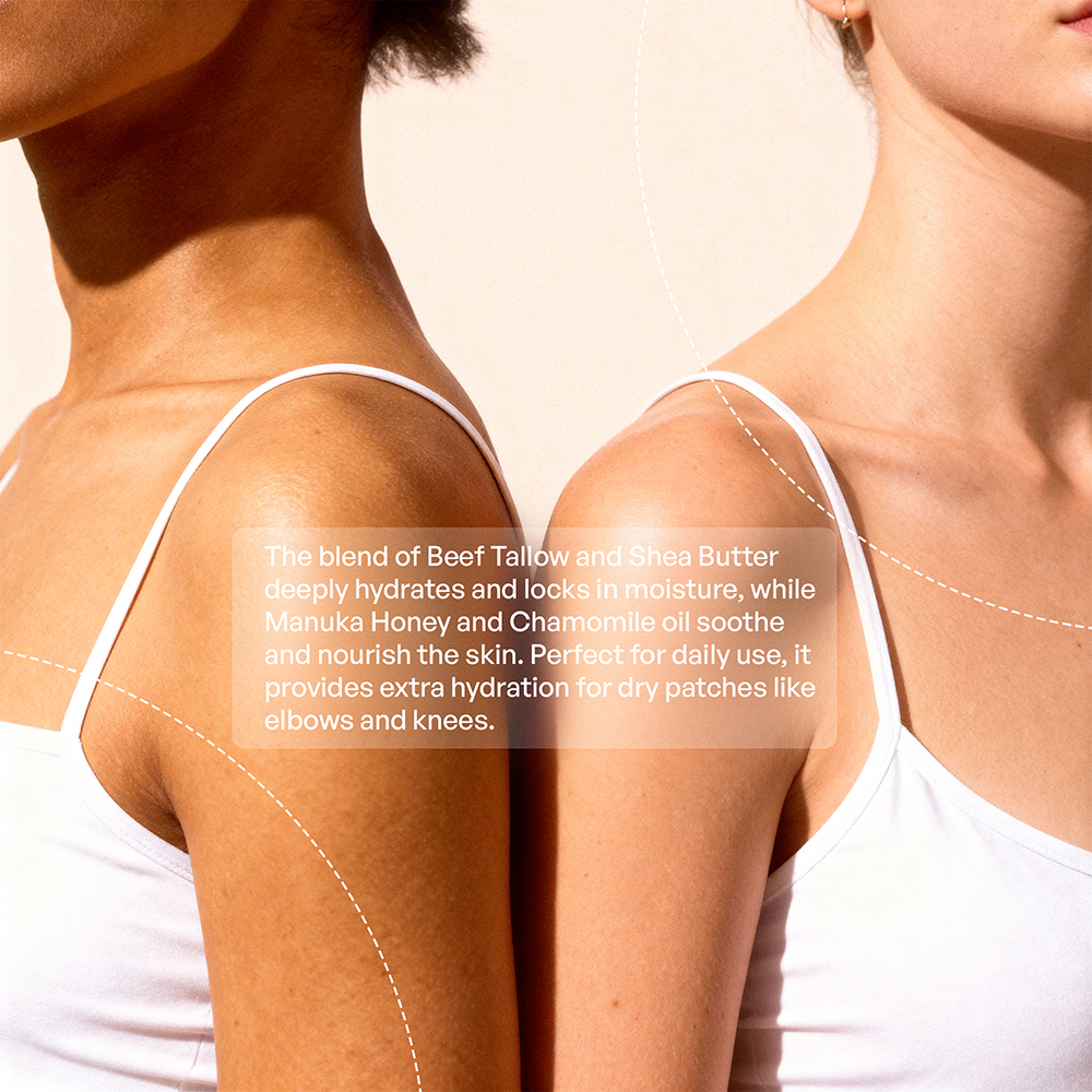 ✨ Pure simplicity - A clean blend of tallow, butters and oils with no preservatives or synthetic fillers.