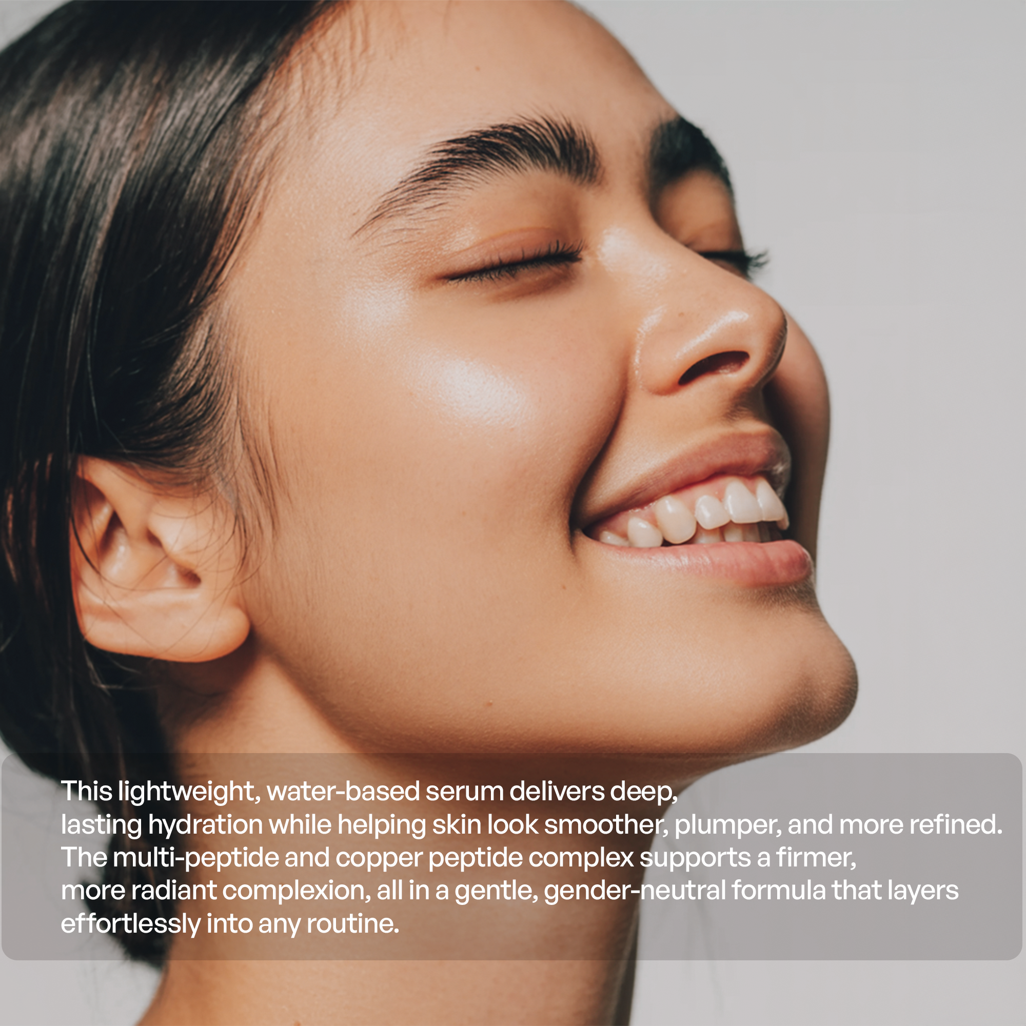The lightweight serum that rejuvenates and deeply hydrates your skin, now made with copper peptides and seven advanced peptide technologies you can trust. Crafted with copper tripeptide‑1, a synergistic blend of seven peptides, humectants and botanical extracts like Centella, Ginseng, and Manuka Honey, this isn’t just another serum. Its deep hydration meets age‑defying renewal.